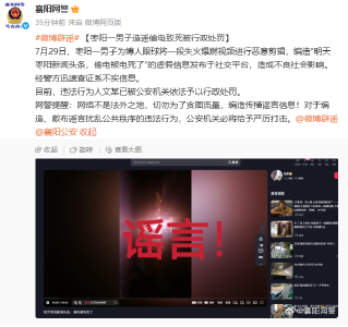 枣阳一男子恶意剪辑视频编造‘偷电致死’谣言,发布后造成不良社会影响,已被公安机关行政处罚。