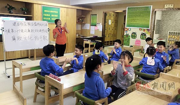 活动中,孩子们认真的聆听廉洁美德小故事,通过讲故事的表达方式将崇廉尚洁的理念渗入幼儿心灵,使幼儿受到以廉为荣的教育。另外,建昌社区副书记龚俊同志为这次党风廉政建设宣传出“新招”,他把廉政知识自编成“拍手歌”,针对幼儿年龄特点,通过“拍手歌”的趣味形式,让小朋友们通俗易懂,理解做人应具备的优良品质,懂得勤俭、节约、诚实、守信是中华民族传统美德。孩子们朗朗上口的学着“你拍一,我拍一,廉洁知识我学习.....”开展廉政文化进校园活动,加强了对幼儿的思想品德教育,营造了良好的校园廉洁文化氛围。