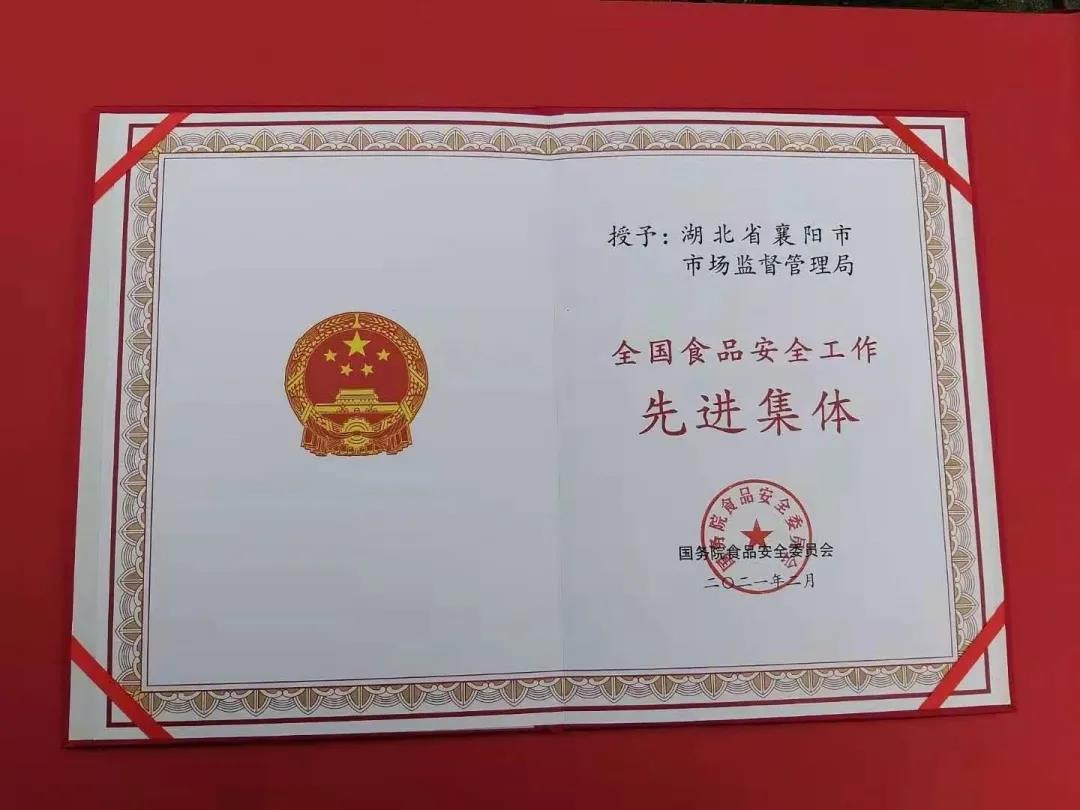 湖北省有8个单位、15名个人获此殊荣其中,襄阳市市场监督管理局荣获“全国食品安全工作先进集体”称号。