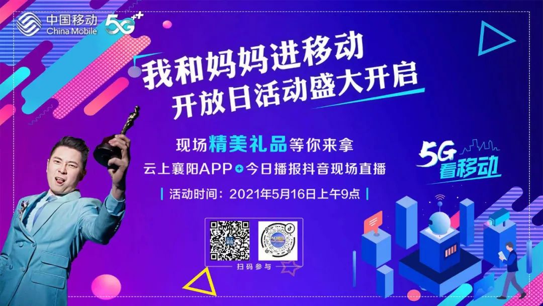 5月16日上午9点,襄阳广播电视台联合襄阳移动分公司举办“我和妈妈进移动”开放日活动,带您和妈妈一起,近距离认识5G,帮助妈妈们适应智能时代、共享科技红利!云上襄阳APP和今日播报抖音号全程直播!看主持人丁波带妈妈们如何玩转5G,参与互动还能赢取移动10G流量包!