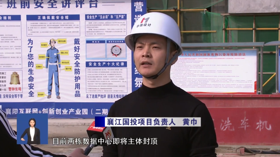 襄江国投项目负责人黄巾:“襄阳互联网+创新创业产业园”二期项目总投资为7.1个亿,用地约35亩,总建筑面积约37000平方米,目前两栋数据中心即将主体封顶,预计明年8月份竣工验收。