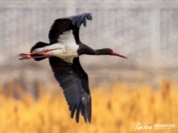 连日来,在新疆克拉玛依市区南郊的古海生态公园里,一只黑鹳在空中盘旋,另一只在芦苇中栖息,给克拉玛依的候鸟迁徙季增添了一抹靓丽风景。这是时隔10年来黑鹳再次“到访”克拉玛依。