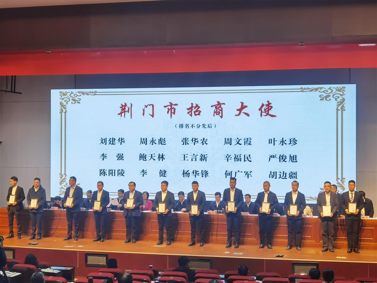 当天会上,荆门市政府还聘请了15位知名企业家担任“荆门市招商大使”,包括亿纬锂能总裁、联合创始人刘建华,湖北文旅集团党委委员、副总经理周永彪,深圳市雄韬电源科技股份有限公司董事长张华农,国华人寿保险股份有限公司党委书记、天茂实业集团股份有限公司总经理周文霞,厦门弘信电子科技集团股份有限公司董事长李强,海太欧林集团股份有限公司董事长叶永珍,湖北京山轻工机械股份有限公司董事长、湖北国宝桥米有限公司董事长李健,新洋丰农业科技股份有限公司总裁杨华锋等。