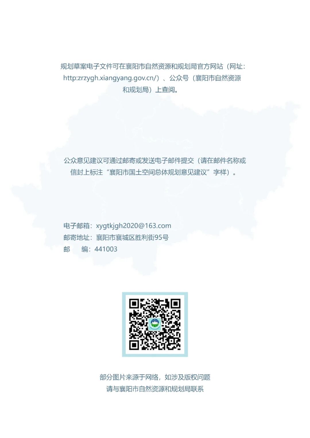 2、邮寄地址:襄阳市胜利街95号襄阳市自然资源和规划局309室规划编制科,邮政编码为441021。(邮件标题或信封封面请注明“襄阳市国土空间总体规划意见建议"字样)。