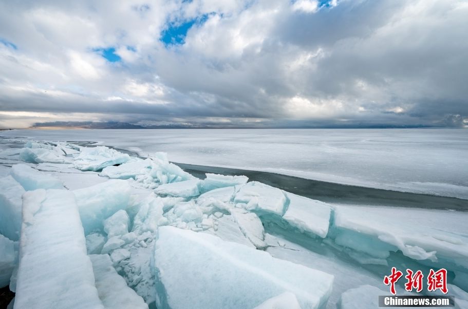 近日,新疆博尔塔拉州博乐市赛里木湖进入冰湖破冰融化期,大量蓝冰涌向湖边,呈现独特蓝冰的景观。