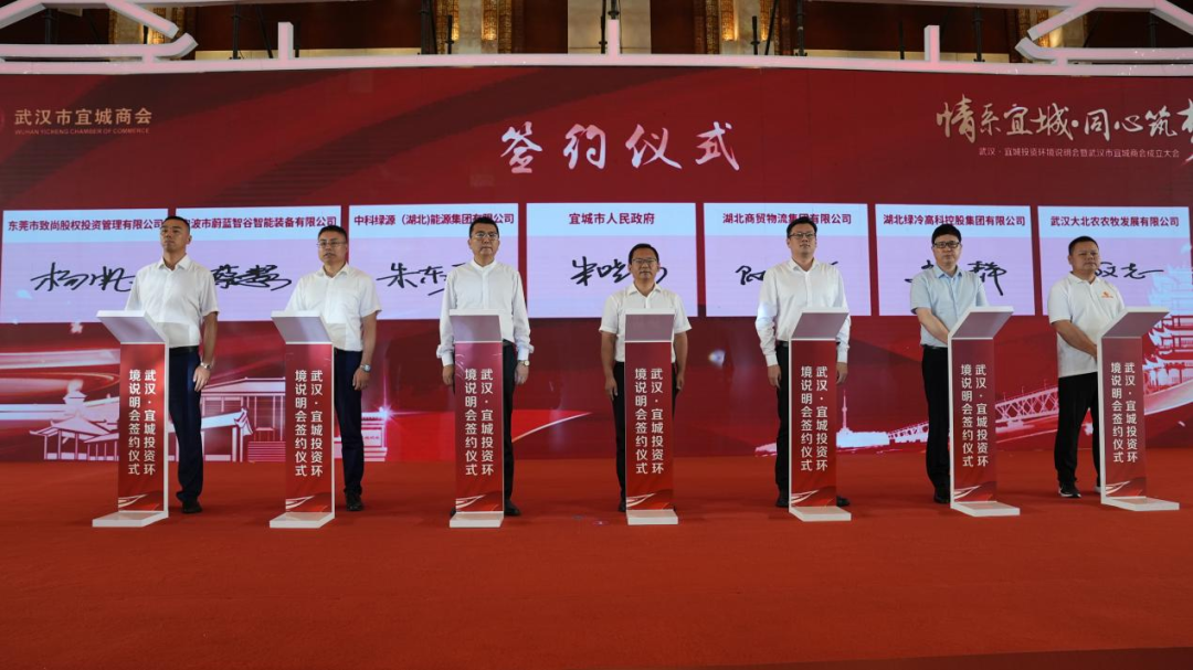 在宜城投资环境说明会上,武汉市宜城商会被授予“宜城市招商工作站”牌匾。宜城市分别围绕全市经济社会发展情况、襄阳(小河)临港经济区概况、宜城一中发展情况、宜城市经开区及襄阳(宜城)精细化工产业园概况等作了投资环境推介。活动现场集中签约6个项目,涉及新材料、饲料加工、仓储物流、船舶制造等产业。