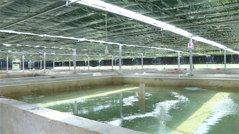 7月22日,记者在板桥店镇上湾村汇泽水产的生态养鱼大棚看到,一个个鱼池整齐排列、格外显眼。身着下水服的几名工作人员正手拿工具,在鱼池里来回忙碌。