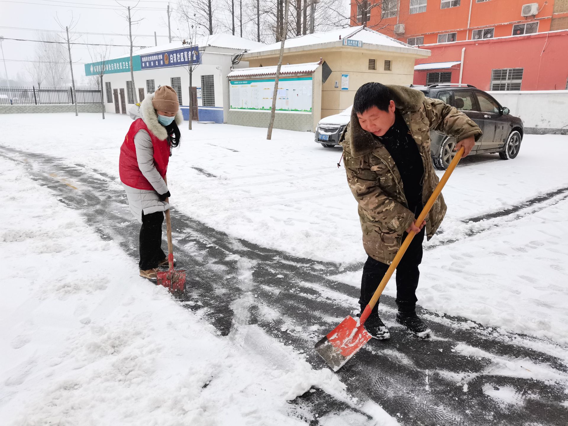 2月2日,一夜之间,白湾社区便民服务中心的地上已经积了厚厚一层雪,为了保障居民的出行安全,白湾社区组织志愿者开展铲雪除冰活动。