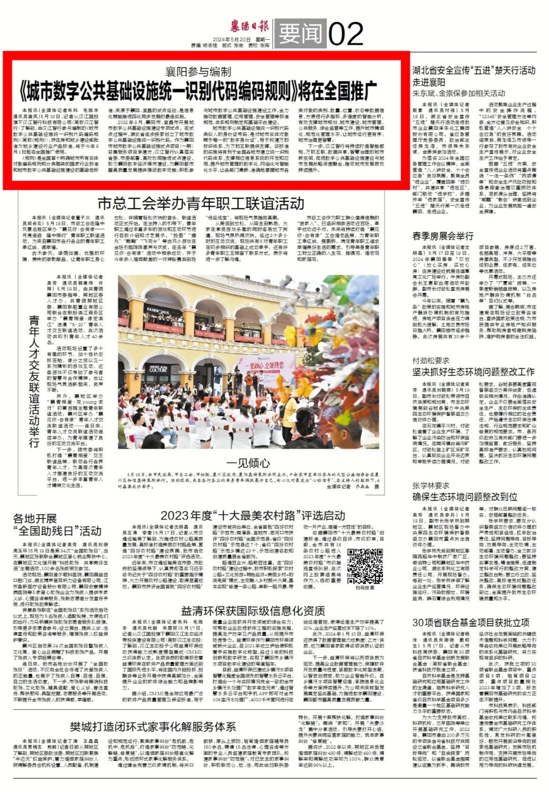 5月20日《襄阳日报》2版作相关报道