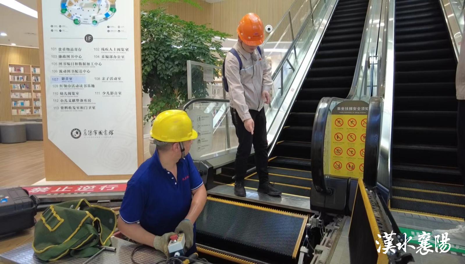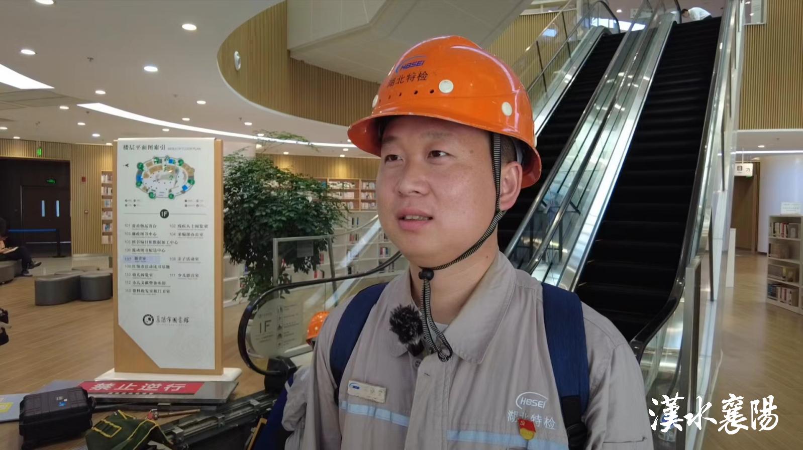 在襄阳市图书馆,检查人员对手扶电梯进行了模拟故障感应测试。测试前电梯维保方首先拆下手扶电梯的一块梯级(脚踏),再让电梯以人工方式运行,当缺失的梯级进入运行时,电梯感应制动装置第一时间发出警报,停止了电梯运行。