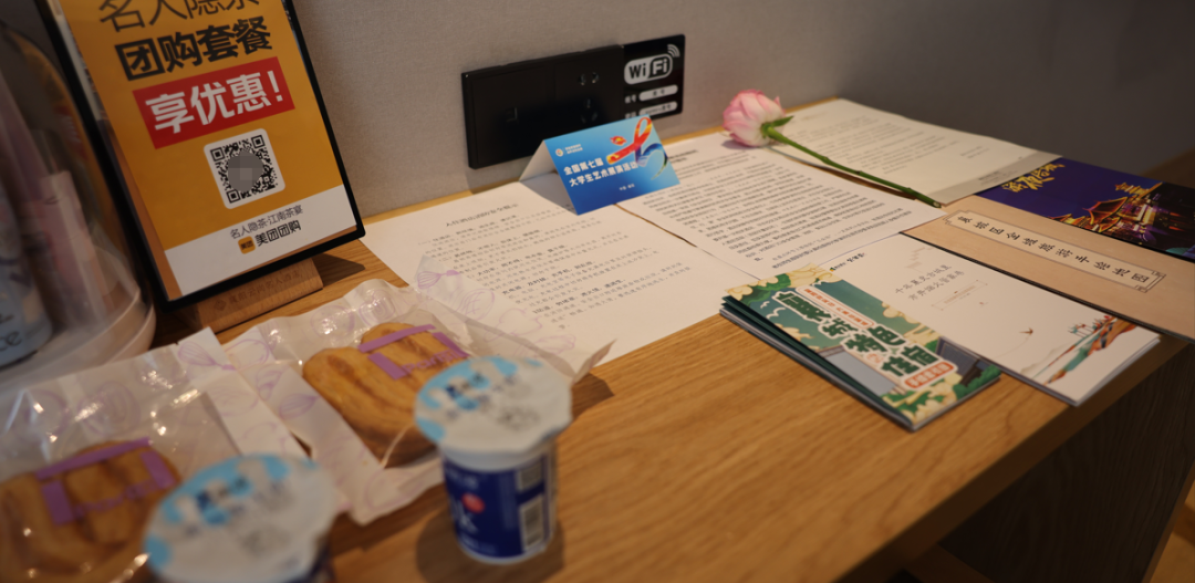 本次大艺展期间,云尚名人酒店推出全口味襄阳特色牛肉面、天美乐和壹家臻品酒店提供宵夜服务、冠江南酒店赠送“襄阳好风景”文创折扇、维也纳酒店也推出高颜值音乐盒伴手礼、新榕庭迎宾馆精心准备勒花茶、酸梅汤、点心等……各家酒店纷纷“别出心裁”为大学生们打造系列特色服务,助力大艺展。