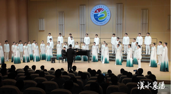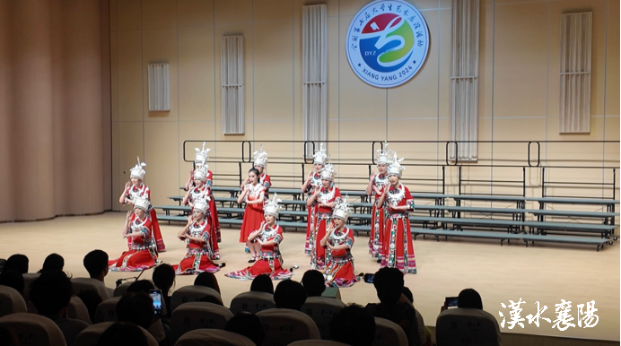 展演活动中,湖南第一师范学院的学生们穿上风格独特的苗族服装,载歌载舞表演合唱了歌曲《山村的笑》,描述了湖南省十八洞村村民在党的领导下,用勤劳的双手,在青山绿水间趟出了一条从精准扶贫到乡村振兴的蝶变之路。