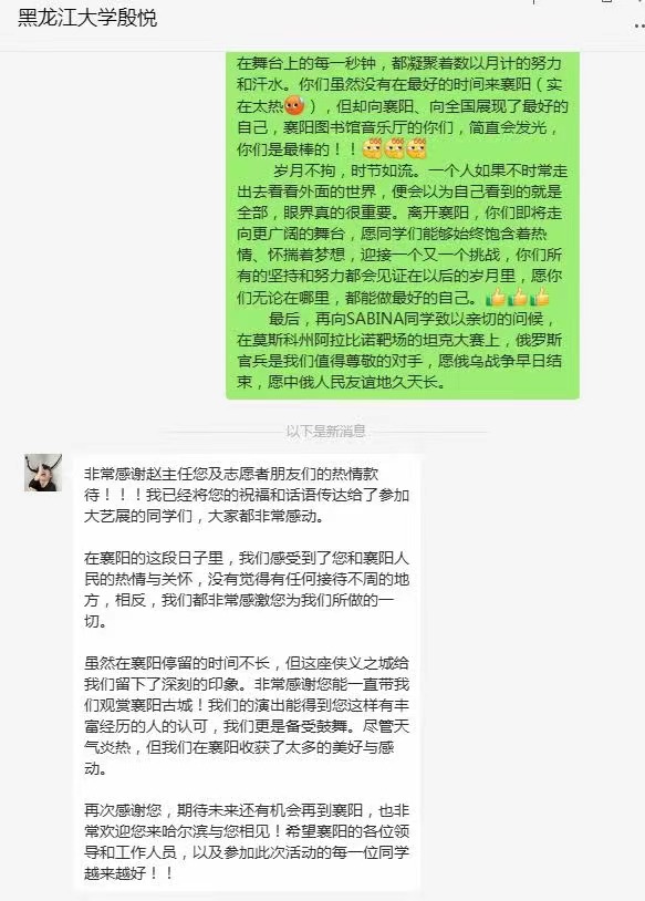 襄阳是侠义之城,但作为三线城市,接待能力确实有限,此次大艺展,我负责整个黑龙江省代表团六个团队的总协调以及黑龙江大学展演团队的接待负责人,有接待不周的地方,还请见谅,也希望今后有机会,大家多来襄阳走走看看,我一定做好接待。