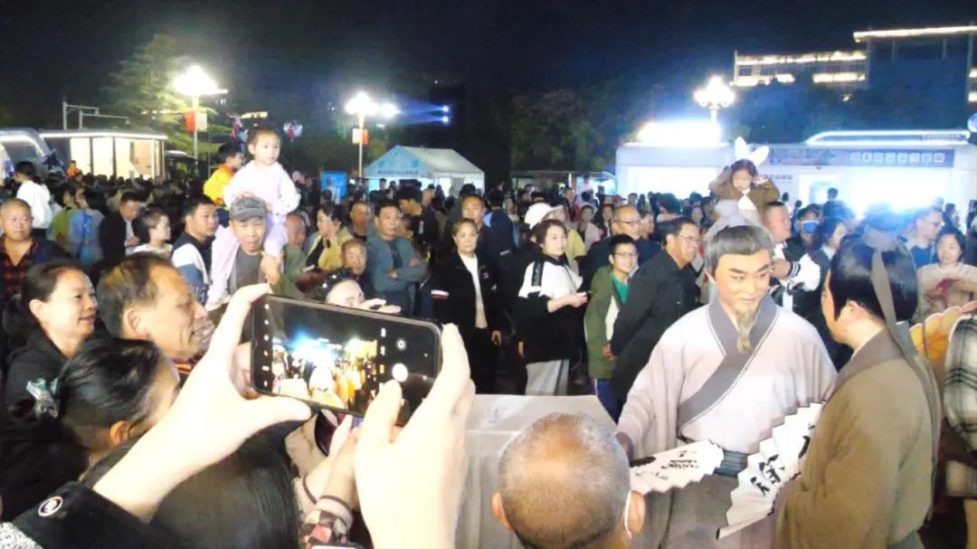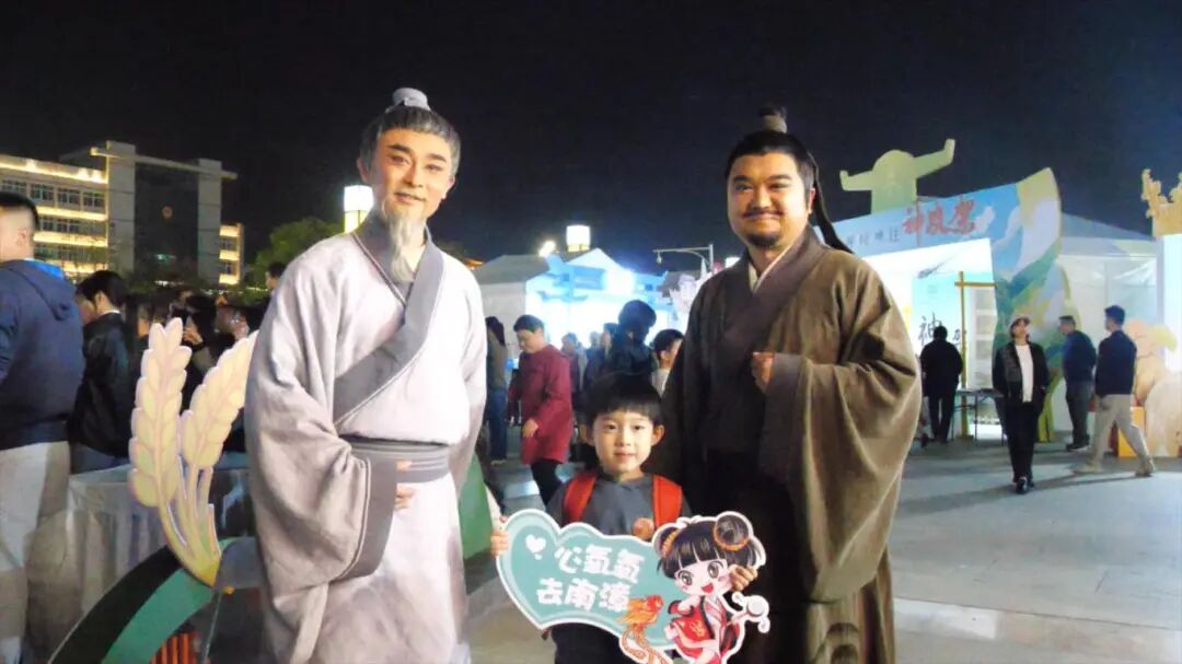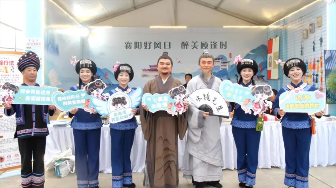 活动现场,南漳的IP人物——水镜先生(司马徽)与徐庶,更是成为了展会上的明星。他们身着古装,风度翩翩。游客们纷纷上前合照,共同定格这难忘的瞬间。