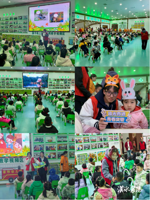 活动伊始,志愿者们以动画短片《湿地小精灵的冒险》切入,通过色彩鲜明的画面和童趣语言,带领小朋友们认识汉江湿地的生态功能与生物多样性。随后,志愿者们头戴动物头饰借助手绘展板、动物玩偶等道具,让小朋友们在角色扮演中理解湿地净化水质、涵养水源的重要意义。