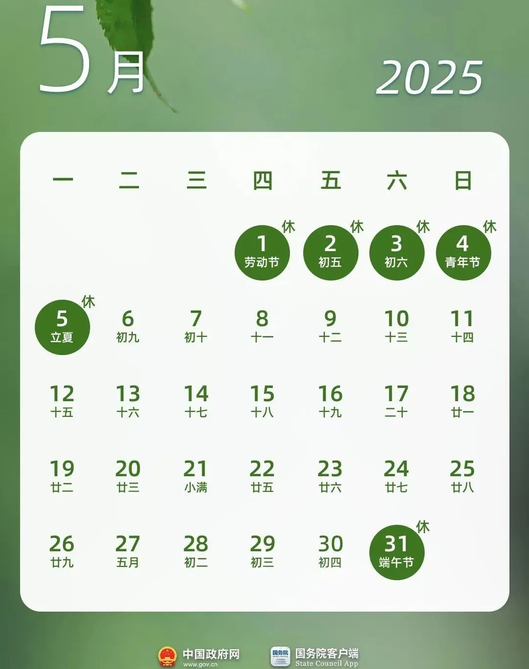 根据2025年的放假安排,在五一劳动节前需要在4月27日调一天班,就能享受五天的快乐小长假。这也是今年上班天数最少的一个月。