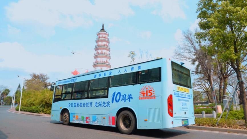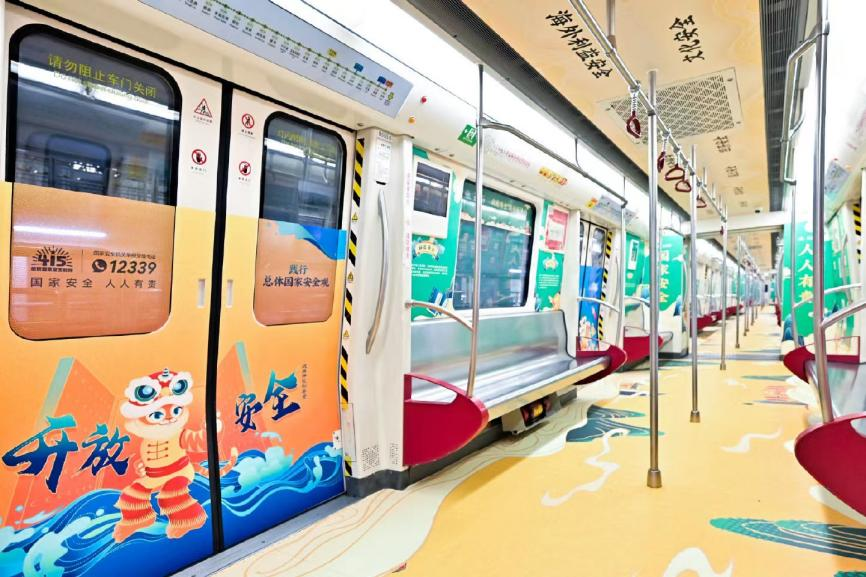 国家安全机关联合铁路集团、地铁公司,开通“国安号”主题列车,把国家安全宣传带到飞驰的列车上。在高铁列车内的展板、小桌板、头枕巾、行李架、车门玻璃等处张贴“国家安全人人有责”等国家安全宣传标语,在车厢地面、顶部、车门等处全方位张贴富有中华传统风格的宣传海报,车厢环境焕然一新,乘客在乘车过程中能够便捷地学习国家安全知识。通过这种贴近市民、更接地气的宣传方式,覆盖不同年龄、职业的人群,推动国家安全宣传教育走进千家万户。
