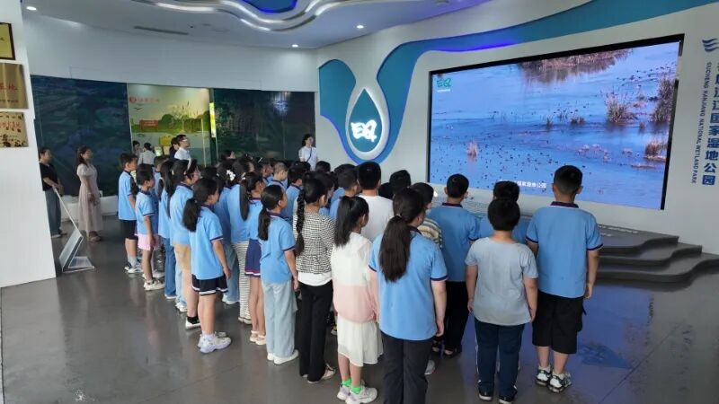 湖北省湿地教育保护学校——谷城县第二实验小学百名师生,在讲解员的带领下,通过观看标本、模型以及多媒体展示,直观地了解了本地丰富的生物种类、生态系统以及生物多样性面临的挑战。