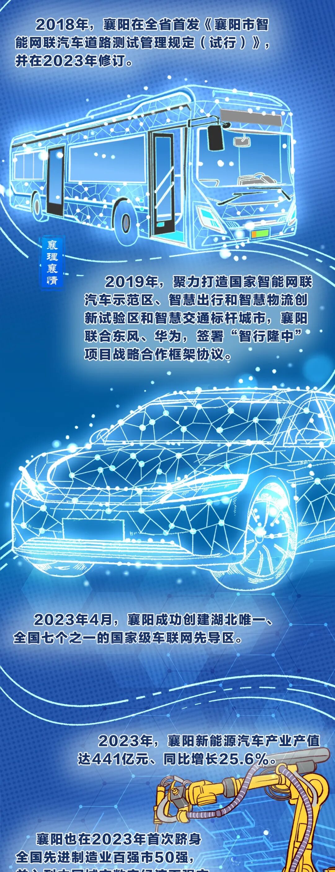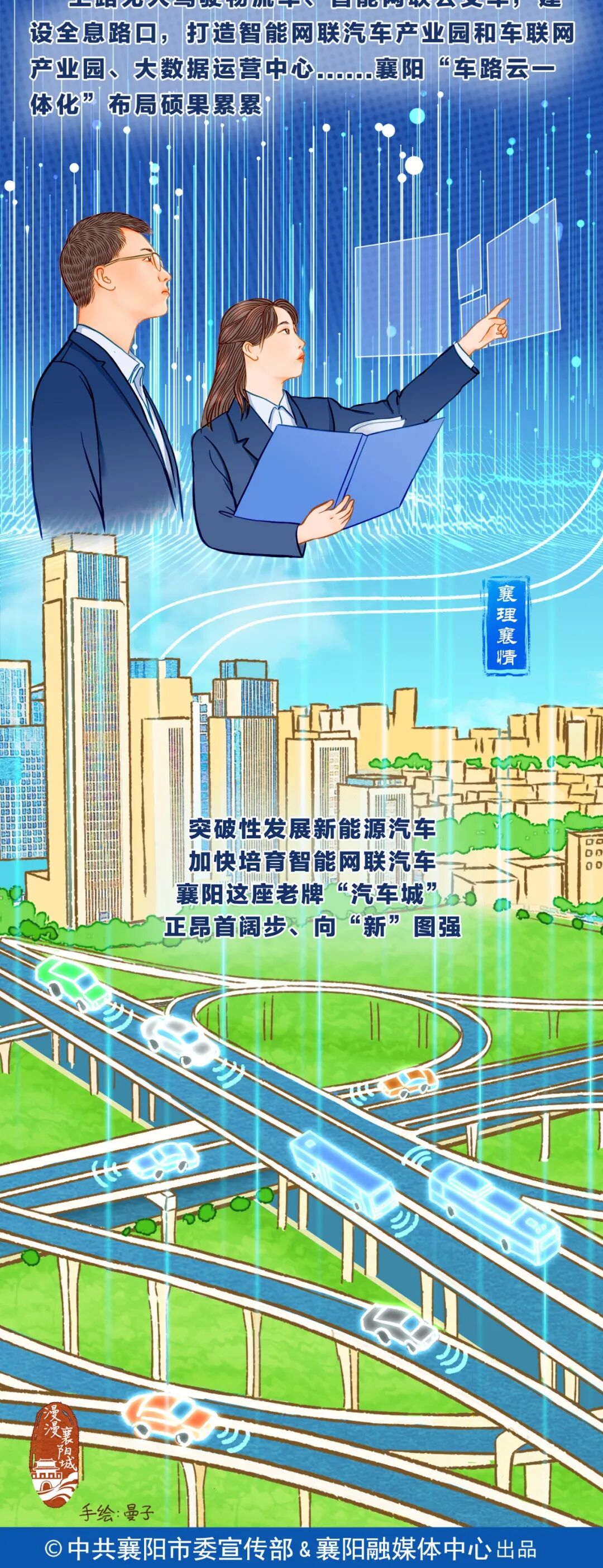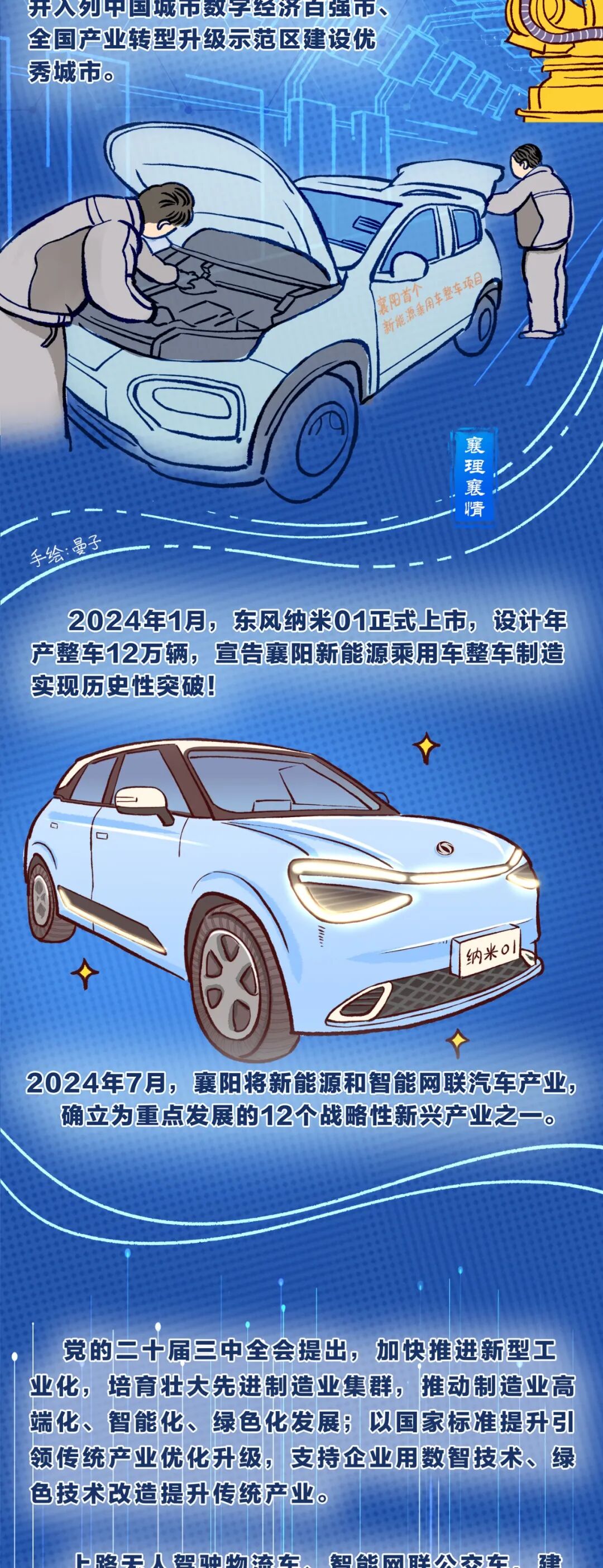 本期《漫漫襄阳城》与“襄理襄情”联合推出理论宣讲漫画作品。襄阳这座老牌的汽车城,因车而立、因车而兴,也在新能源和智能网联汽车的新赛道上,厚积薄发、向“新”而行。请看——