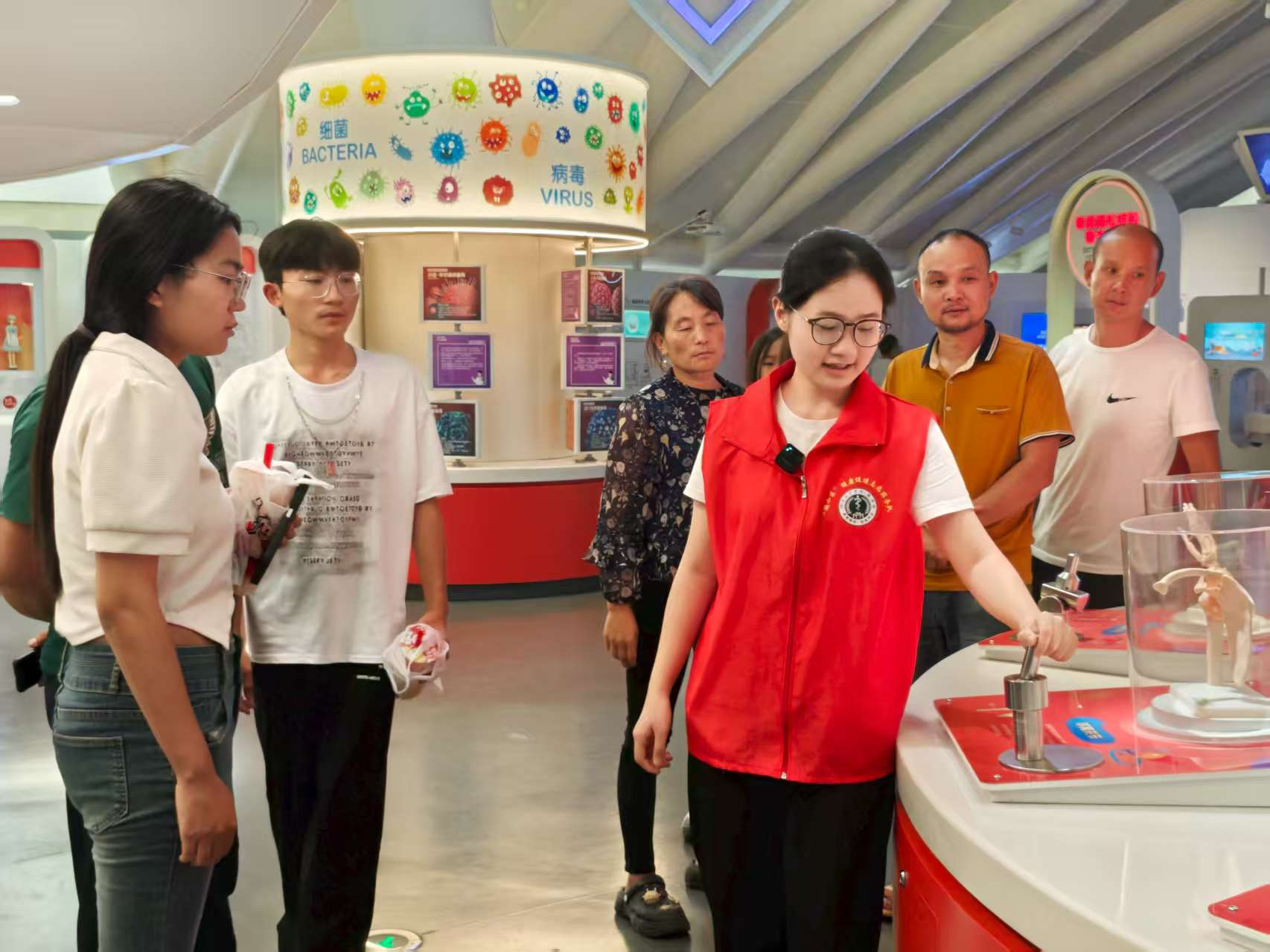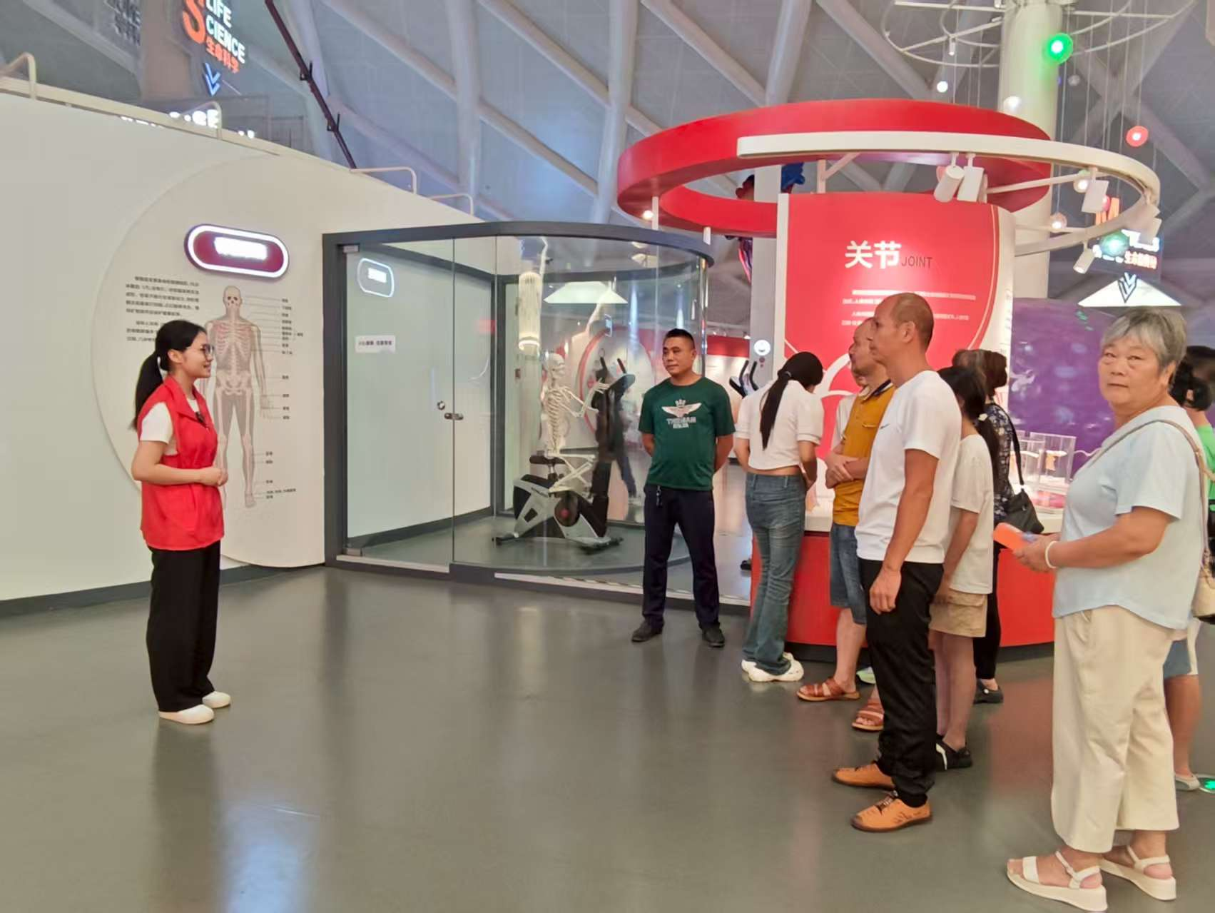 (图为志愿者向观众讲解骨关节 黄羽西/摄)