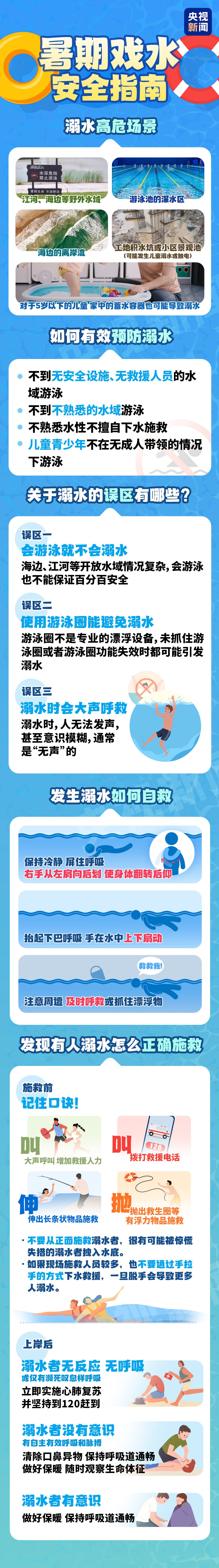 暑期戏水必备!收下这份安全指南→ 2025-07-25 09:33 央视新闻客户端 0 今天是 世界防溺水日 正值暑期 落水、溺水事件频发 大家在海边、泳池 尽情享受清凉的同时 一定要时刻警惕水中的安全隐患 要如何预防自己溺水 有人溺水又该怎么施救? 这篇安全指南 让你玩水不恐慌 ↓↓↓ 来源:央视新闻客户端 编辑:李春辉