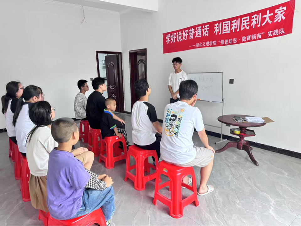近日,湖北文理学院“推普助恩·数育新苗”实践队精心策划的“经典诵读工坊——千年回响”活动在湖北省恩施土家族苗族自治州建始县花坪镇田家坪村正式启动。本次系列活动将推广普通话与传承中华经典文化紧密结合,旨在以清晰规范的语言为舟楫,载着乡村孩子们遨游五千年文明的海洋。