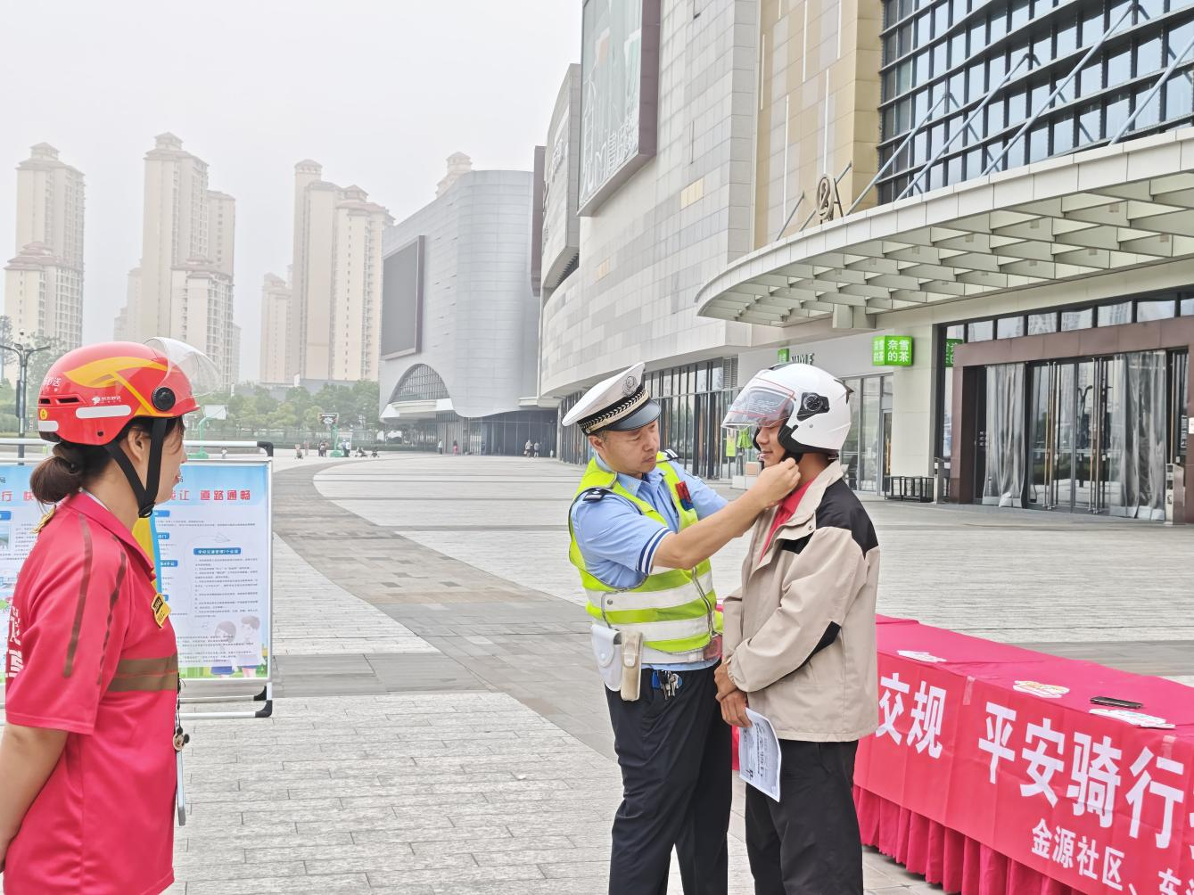 外卖骑手、快递员每日穿梭于城市街巷,是保障城市运转的 “流动风景线”,但高频奔波也让他们面临较高交通安全风险。为切实守护这一群体的出行安全,9月5日上午,金源社区、东津新区公安分局警务平台大队,在东津民发世纪广场门前成功举办 “警社联动宣交规,平安骑行护‘新’路” 交通安全宣讲活动,辖区内50余名新就业群体代表积极参与。