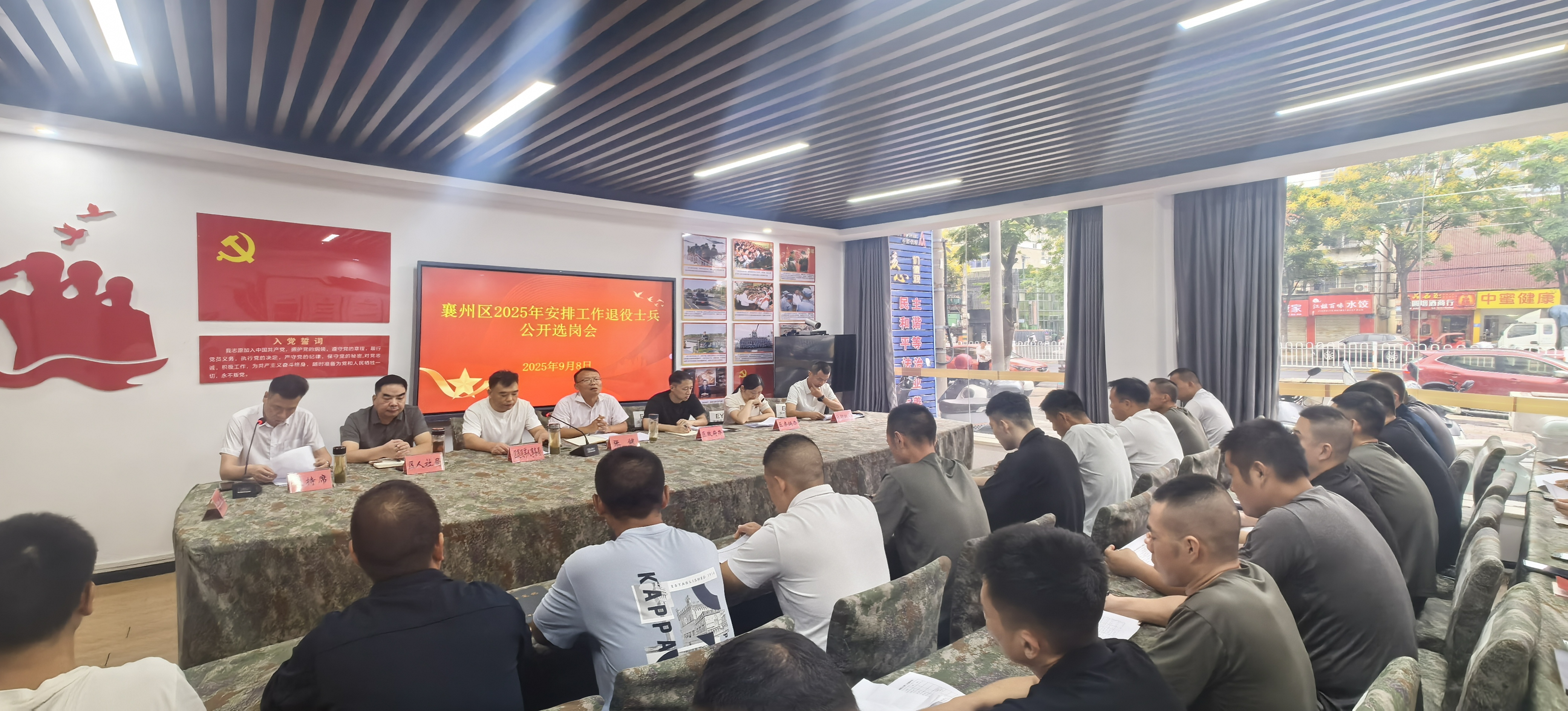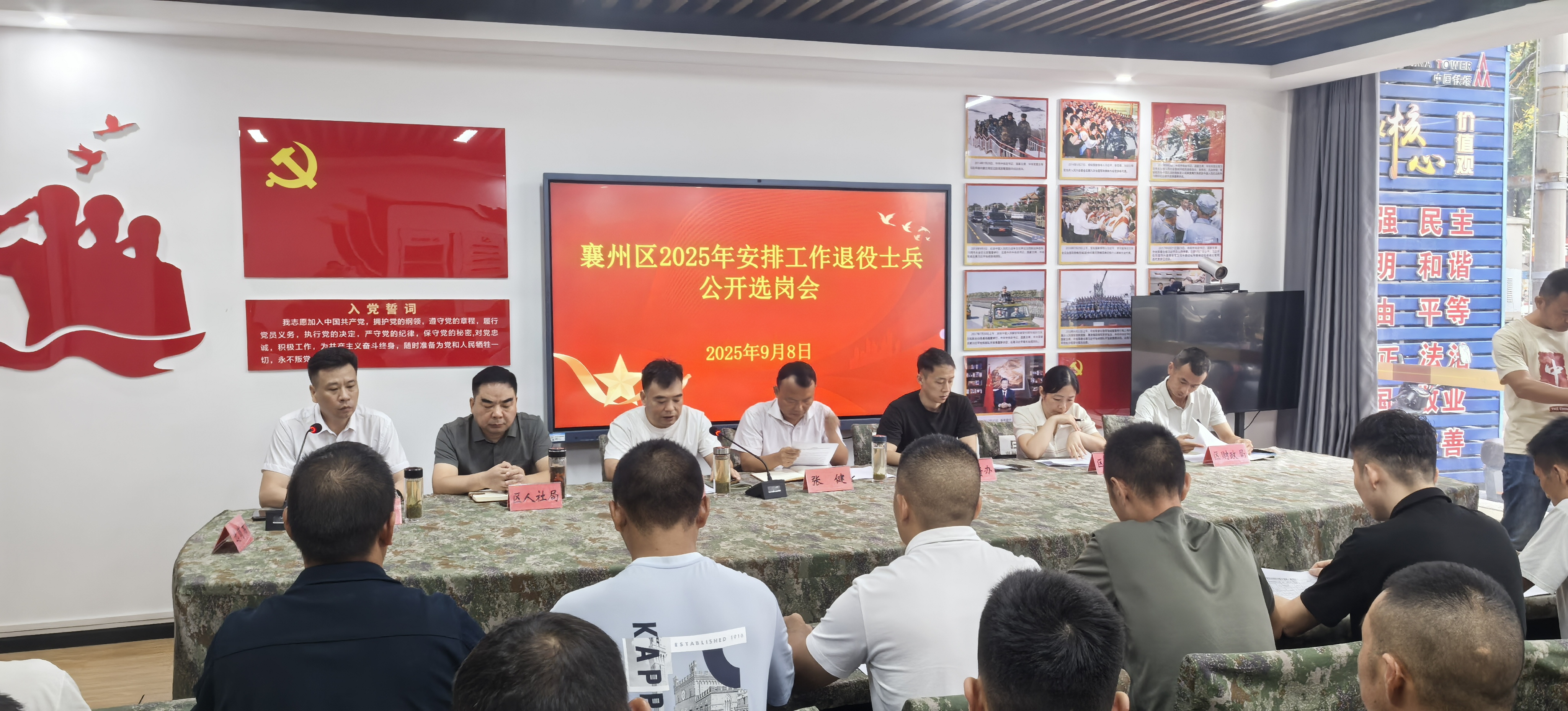 9月8日上午,襄州区召开2025年度符合政府安排工作退役士兵公开选岗会,区政府相关领导、区直相关单位负责人对安置选岗进行全过程跟踪监督,40名安排工作退役士兵选到了适合的岗位,实现了“阳光安置”。