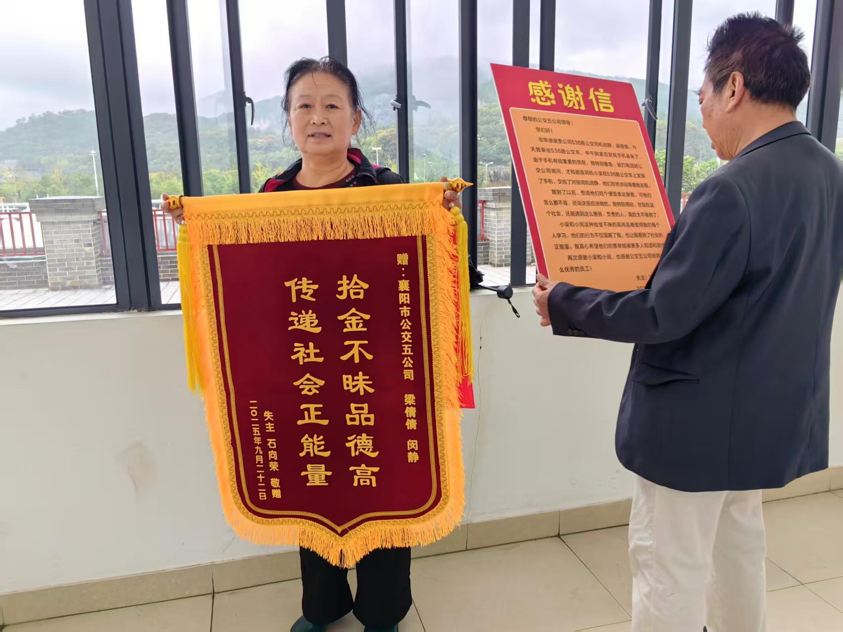 次日(9月23日),这位老年乘客特意定制了锦旗,并写下感谢信送到公司,由衷感谢梁师傅拾金不昧的高尚品行。