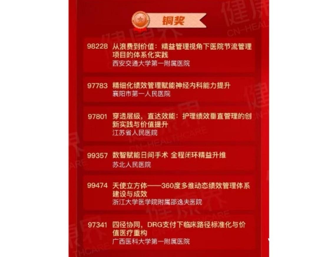 近日,第九季中国医院管理奖决赛榜单揭晓,襄阳市第一人民医院运营管理部报送的《精细化绩效管理赋能神经内科能力提升》案例获得全国铜奖;该部门另一参赛案例《“AI+”赋能医院成本RPA控制系统的探索》荣获(中南地区)区域优秀奖。