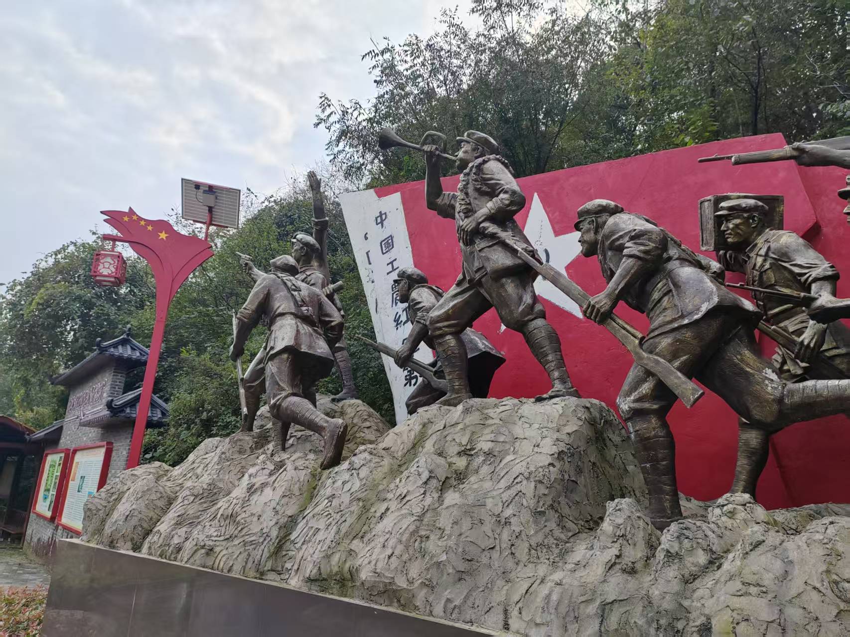 从“三厂一院”展陈馆出来左转的路口,立着一组红军战士作战的雕像。“从这组雕像到舒家洞遗址全长5公里,我们叫它‘红军路’。这条路是村民让田让地、齐心协力修出来的。”王伟说。