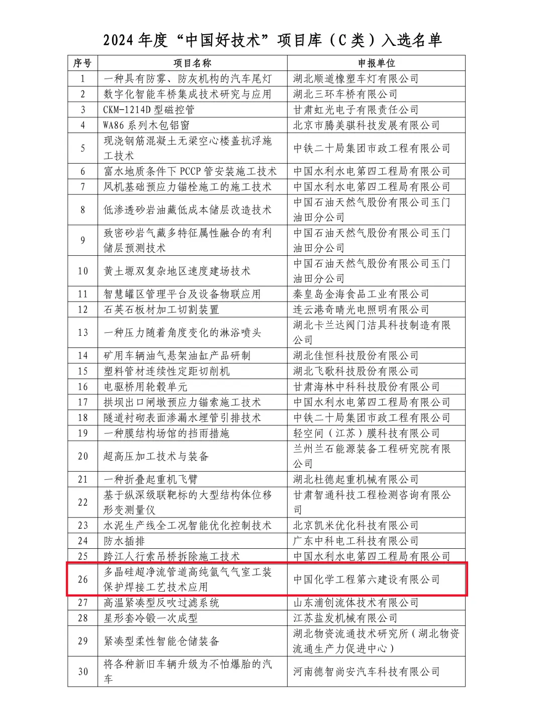 襄阳企业助力国产芯片材料成功突围!11月10日,中国化学工程第六建设有限公司(简称“六化建”)传来喜讯:该公司研发的“多晶硅超净流管道高纯氩气气室工装保护焊接工艺技术应用”,成功入选2024年度“中国好技术”项目库。该技术使国产电子级多晶硅纯度达到惊人的99.99999999999%(简称“13个9”),远超芯片制造所需标准。