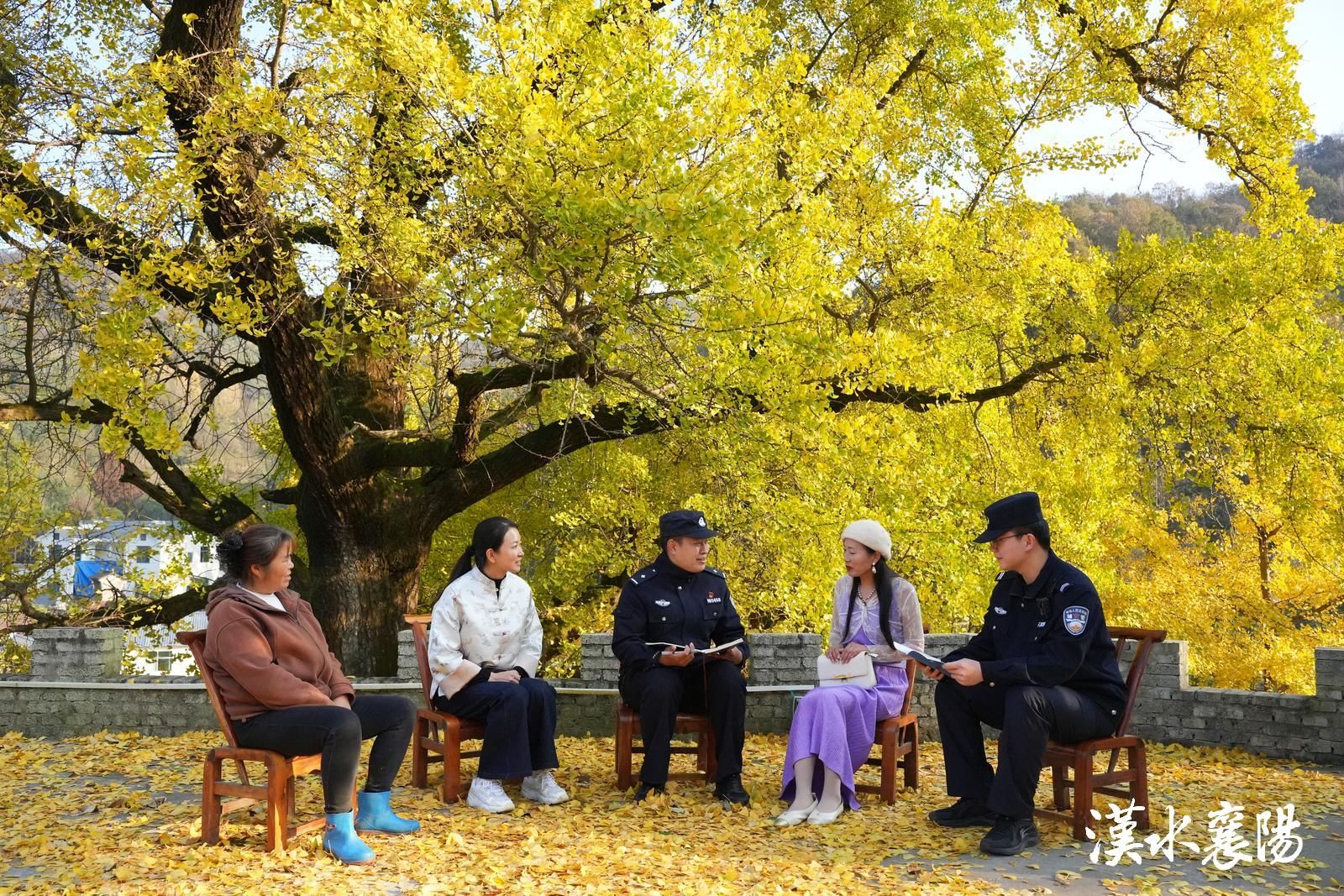 近日,谷城县茨河镇胡家泉村的千年银杏树迎来了最佳观赏期,各地游客纷纷赶来,感受“千年风华映金辉”的独特景致。为筑牢反诈防线,茨河派出所推出“旅游警务+反诈宣传”模式,将“反诈课堂”搬到银杏林间。