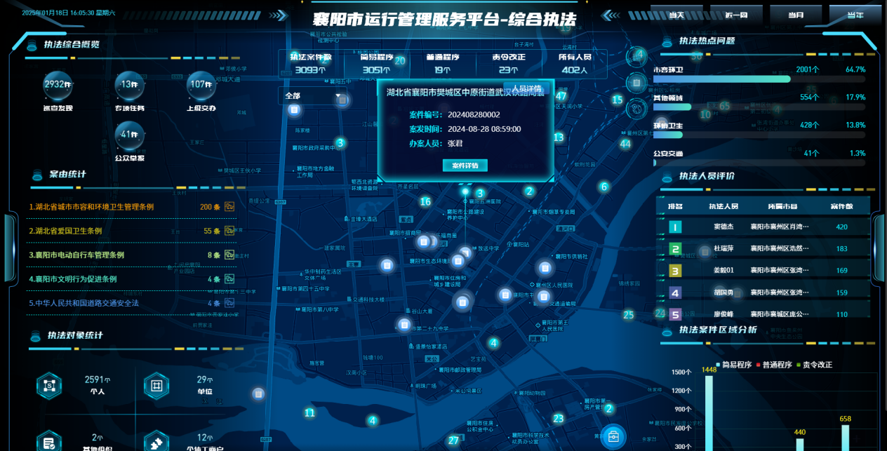 基层治理效能也因“网”而升。通过政务微信,市级层面发现的问题可以直达街道甚至基层执法人员;基层网格员上报的问题,由事件库自动匹配处置部门,实现“社区吹哨、部门报到”。据统计,80%的城市管理事件可在街道层面完成处置,效率提升1倍以上。2023年,襄阳通过“一网统管”平台高效处置城市事件超过22万件。