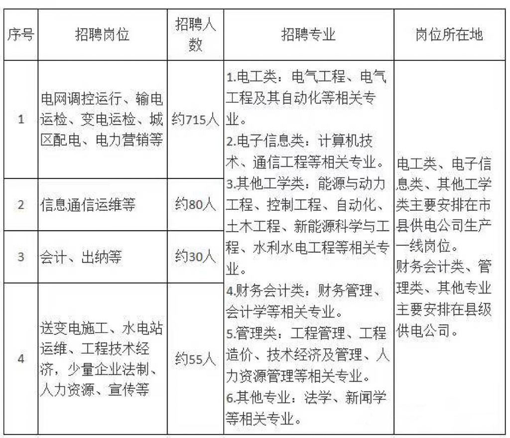 4.应聘毕业生应具有正常履行职责的身体条件和心理素质,符合国家公务员录用体检标准和电力企业岗位工作要求。毕业生入职后须在生产一线岗位工作,为保障人身、电网和设备安全,经指定医疗机构鉴定患有色盲、恐高症或严重心血管疾病等不适合电力作业岗位疾病者,不符合招聘要求。