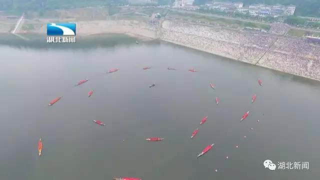和其他地方不同,秭归的龙舟竞渡比赛前,要先为龙头点睛,再举行游江招魂。数万屈乡儿女守在江边,呼唤亲人屈公魂归故里。在白龙孝龙引导下,20条大、小龙舟在宽阔的江面上绕圈划行。
