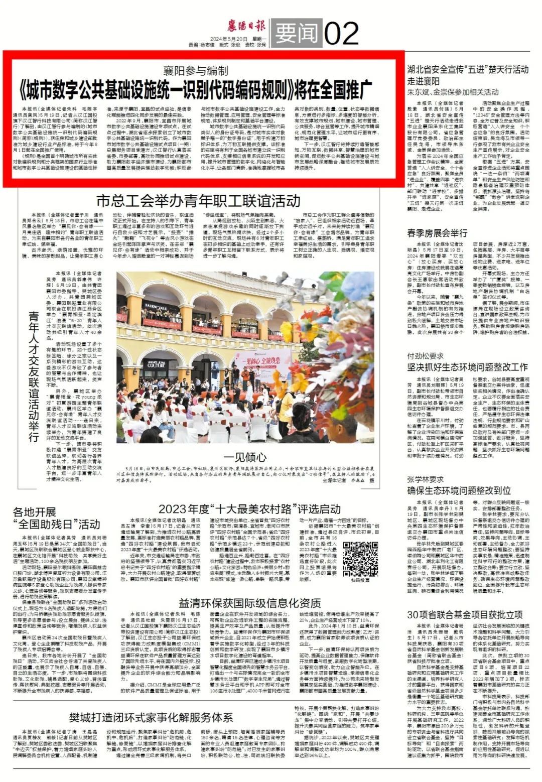 5月20日《襄阳日报》2版作相关报道