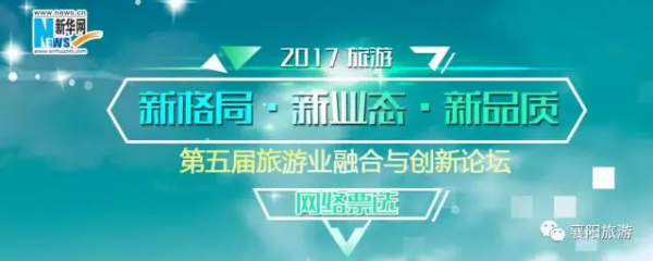 9月17日,在新华网主办的2017旅游“新格局、新业态、新品质”暨第五届旅游业融合与创新论坛上,襄阳荣获“最美中国榜”“大众休闲·健康养生旅游城市”和“文化魅力·特色魅力旅游城市”称号。