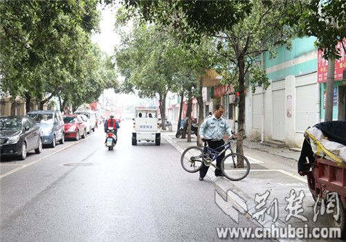 临近国庆,细雨纷飞下个不停。9月29日上午九点,记者跟随襄州区城管局执法二中队网格长王先锋“巡街”。一路上他不停地督促商户收捡摆放在外的货物、拖把、垃圾桶,帮忙搬移着店门口随意停放的自行车、电动车,俨然一位城市“大管家”。