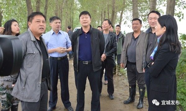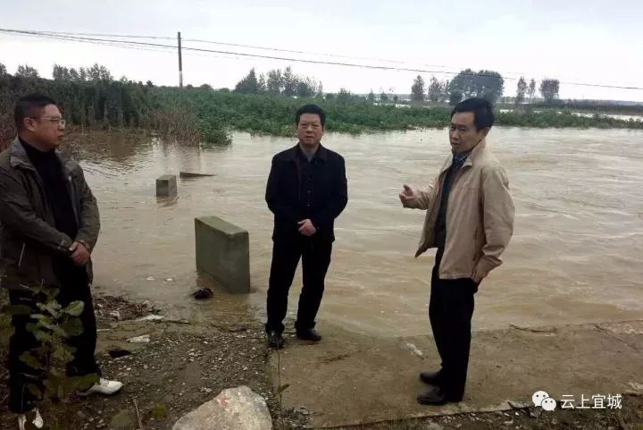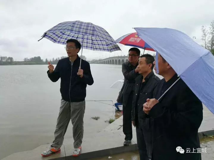 宜城市委常委、宣传部部长刘超,副市长金德安在王集镇指导巡查防汛工作。