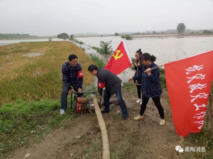 宜城市财政局救灾工作队在郑集镇轩庄村排涝。 吴光平 摄
