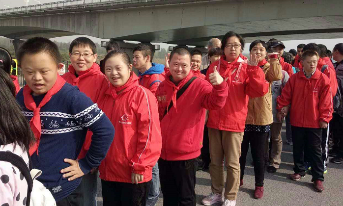 “余园长!我也光荣加入少先队员了”蒋跃高兴的说道。“我要好好学习,谢谢老师们”这是一个特殊的家园,最小的8岁,最大的36岁,每个学生的智力只有“三四岁”,在义工老师的带领下愉快地戴上鲜艳的红领巾,每个人脸上洋溢着幸福的笑容。