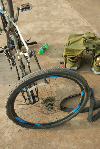 小刘介绍,第一次这样远距离的独自骑行,一路上也曾遇到过麻烦。走到随州时,就觉得车骑着骑着不对劲,一看很细的铁丝把车给扎破了,自己随便就补了下。