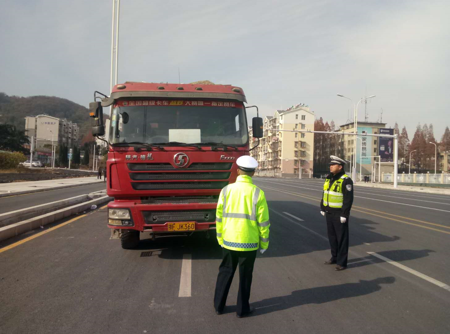 得知大货车在襄轴一路和内环路交叉处飞扬洒漏比较严重消息后,今天上午,襄城檀溪警务平台已安排民警赶到现场,对违规车辆进行整治。仅仅两个小时,民警就现场查获三辆飞扬酒漏的大货车。根据道路交通安全法的规定,处两百元处罚,并责令立即整改。