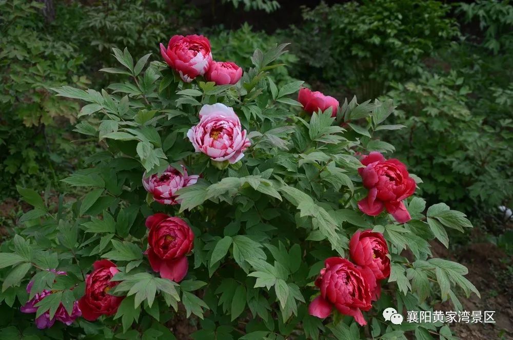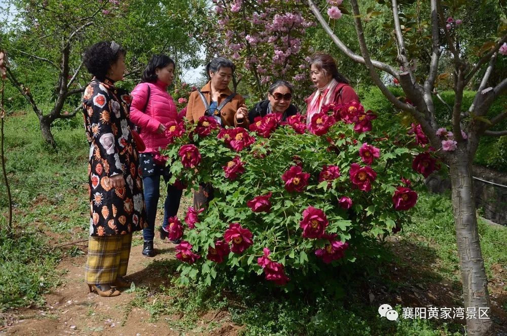 黄家湾有万株牡丹,主要分布在高速公路边的八卦牡丹园和景区内部的龙凤牡丹园,有30多个品种。是襄阳乃至鄂西北最大的牡丹种植地。