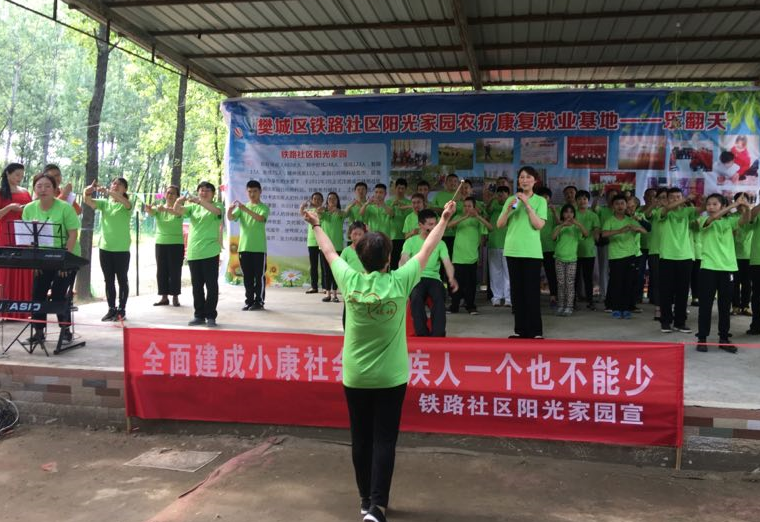 5月10日下午,铁路社区阳光家园与中原、米公、王寨、屏襄门财政所的党员志愿者和襄阳致远社工服务中心、樊城区福利院等多家爱心团体在桃花岛“铁路社区阳光家园农疗康复就业基地”举办“全面建成小康社会,残疾人一个不能少”欢庆第28个全国助残日主题活动。