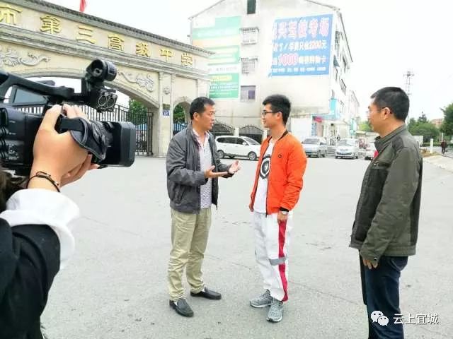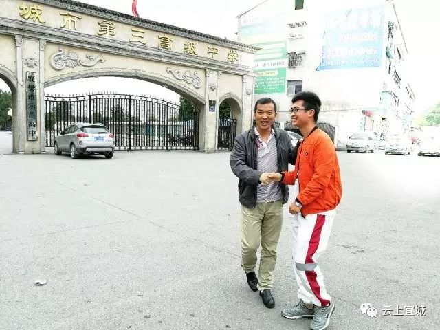在宜城第三高级中学门口我们见到了他们父子