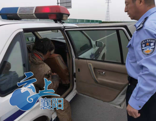 14日中午12时许,湖北省宜城交警大队高速公路中队民警王涛、李邦杰巡逻至麻竹高速宜城汉江大桥时,发现前方车道内有一名背着黄色蛇皮袋、穿着十分邋遢的男子正在高速公路步行,情况非常危险。民警迅速停下警车,将这名男子带至安全地带。
