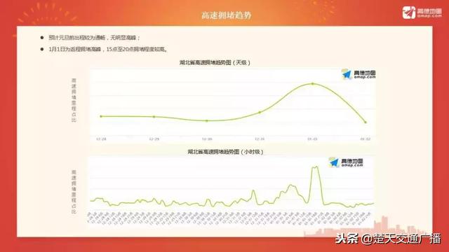 为保障群众元旦假期平安出行,湖北省公安厅交通管理局联合高德地图发布《2019年湖北省元旦出行预测报告 》。根据高德大数据分析和近年元旦假期出行特点,提醒广大交通参与者注意安全、小心驾驶,及时躲避拥堵路段,错时错峰出行。