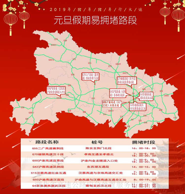 (三)湖北省高速公路网易拥堵路段、收费站绕行建议。